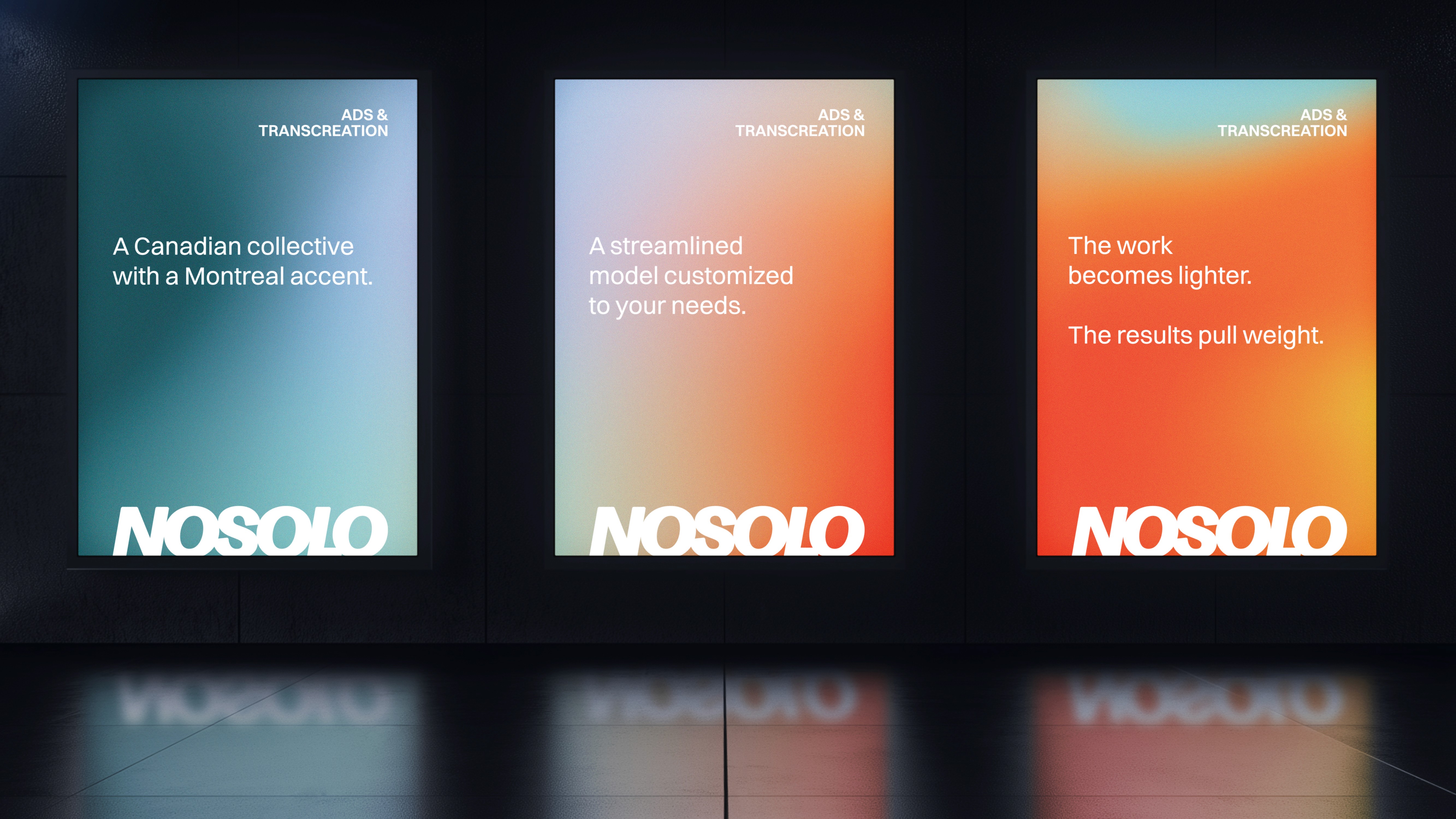 “We’ve all felt a little alone in this business,” says Sann. “Nosolo exists to lighten your load, as the name implies. And in the French market, we bridge the two solitudes. We’re your other half, the Franco to your Anglo. We know Quebec consumers, and nothing turns them off faster than work that feels like a checked-off box. We make them feel like the work was made just for them.”